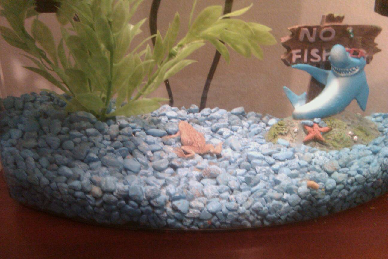 Fearing the death of our second frog I went to a pet store and got what they recommended, frog and tadpole food. Duh right? I came home that night and totally cleaned the tank. Changed the water, rinsed the rocks, did everything by the book. Then fed it some of the new food. Two days later and still it has not eaten anything. I'm going to have to clean moldy bits out again.